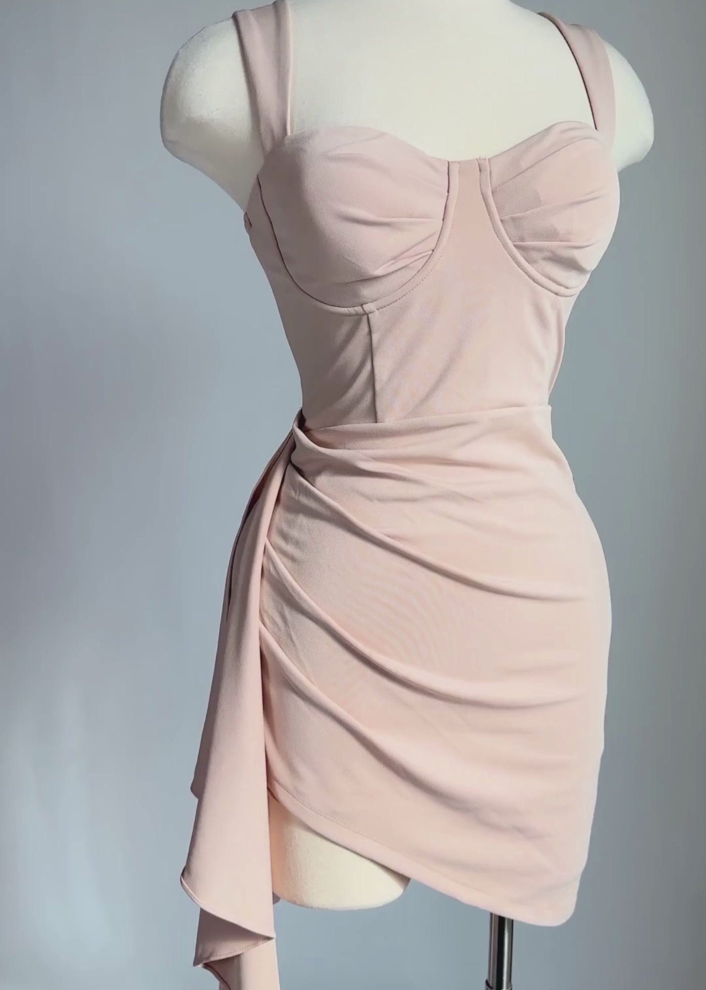 This beautiful Juliette dress features a side ruffle ruched and asymmetric hem. It has wired bust with cup pads and zipper at the back